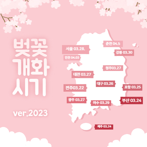 다음 전국 지역별 벚꽃 개화시기를 첨부 해두었으니 참고하시기 바랍니다.